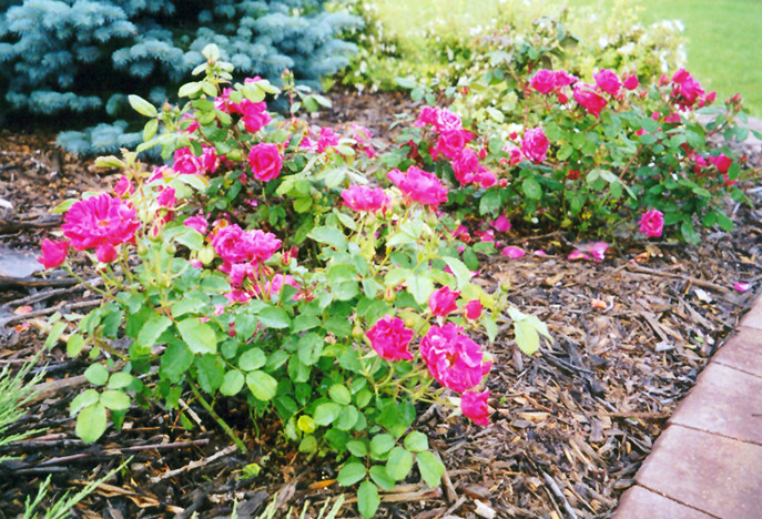 Hardiness Zone: 2b Group/Class: Parkland Rose Description: This compact beauty produces loads of medium-sized cheery reddish-pink flowers atop a dwarf shrub, ideal for use in the garden border, resistant to disease; needs full sun and well-drained soil Ornamental Features Morden Amorette Rose is blanketed in stunning semi-double red flowers with yellow eyes at the ends of the branches from late spring to late summer. The flowers are excellent for cutting. It has dark green deciduous foliage. The oval compound leaves turn yellow in fall. Landscape Attributes Morden Amorette Rose is a multi-stemmed deciduous shrub with an upright spreading habit of growth. Its average texture blends into the landscape, but can be balanced by one or two finer or coarser trees or shrubs for an effective composition. This is a high maintenance shrub that will require regular care and upkeep, and is best pruned in late winter once the threat of extreme cold has passed. Gardeners should be aware of the following characteristic(s) that may warrant special consideration; Morden Amorette Rose is recommended for the following landscape applications; Planting & Growing Morden Amorette Rose will grow to be about 24 inches tall at maturity, with a spread of 24 inches. It tends to fill out right to the ground and therefore doesn't necessarily require facer plants in front. It grows at a fast rate, and under ideal conditions can be expected to live for approximately 20 years. This shrub should only be grown in full sunlight. It does best in average to evenly moist conditions, but will not tolerate standing water. It is not particular as to soil type or pH. It is somewhat tolerant of urban pollution. This particular variety is an interspecific hybrid. Morden Amorette Rose makes a fine choice for the outdoor landscape, but it is also well-suited for use in outdoor pots and containers. With its upright habit of growth, it is best suited for use as a 'thriller' in the 'spiller-thriller-filler' container combination; plant it near the center of the pot, surrounded by smaller plants and those that spill over the edges. It is even sizeable enough that it can be grown alone in a suitable container. Note that when grown in a container, it may not perform exactly as indicated on the tag - this is to be expected. Also note that when growing plants in outdoor containers and baskets, they may require more frequent waterings than they would in the yard or garden. Be aware that in our climate, most plants cannot be expected to survive the winter if left in containers outdoors, and this plant is no exception. Contact our experts for more information on how to protect it over the winter months.