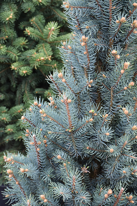 Hardiness Zone: 2b Other Names: Blue Colorado Spruce;Colorado Blue Spruce Description: An unmistakable tree for sure, featuring bright blue-green needles on a narrowly upright and columnar form, branches forking upwards at a sharp angle; best used as an accent, for adding dynamic interest to smaller home landscapes Ornamental Features Blue Totem Spruce is primarily valued in the landscape for its rigidly columnar form. It has attractive bluish-green evergreen foliage which emerges blue in spring. The needles are highly ornamental and remain bluish-green throughout the winter. The rough gray bark adds an interesting dimension to the landscape. Landscape Attributes Blue Totem Spruce is a dense evergreen tree with a strong central leader and a narrowly upright and columnar growth habit. Its average texture blends into the landscape, but can be balanced by one or two finer or coarser trees or shrubs for an effective composition. This is a relatively low maintenance tree. When pruning is necessary, it is recommended to only trim back the new growth of the current season, other than to remove any dieback. Deer don't particularly care for this plant and will usually leave it alone in favor of tastier treats. It has no significant negative characteristics. Blue Totem Spruce is recommended for the following landscape applications; Planting & Growing Blue Totem Spruce will grow to be about 15 feet tall at maturity, with a spread of 3 feet. It has a low canopy with a typical clearance of 1 foot from the ground, and is suitable for planting under power lines. It grows at a slow rate, and under ideal conditions can be expected to live for 80 years or more. This tree does best in full sun to partial shade. It is very adaptable to both dry and moist growing conditions, but will not tolerate any standing water. It is considered to be drought-tolerant, and thus makes an ideal choice for xeriscaping or the moisture-conserving landscape. It is not particular as to soil type or pH, and is able to handle environmental salt. It is highly tolerant of urban pollution and will even thrive in inner city environments. This is a selection of a native North American species.![]()