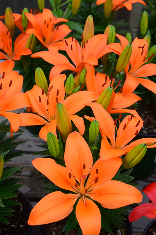 Hardiness Zone: 3a Group/Class: Asiatic Hybrid Brand: DeGroot Description: A brilliant lily with gorgeous, large orange blooms creating a memorable impact in the garden; perfect choice to create a striking focal point in borders or massed, particularily great for planters because of shorter plant height Ornamental Features Matrix Orange® Lily features bold orange trumpet-shaped flowers at the ends of the stems in mid summer. The flowers are excellent for cutting. Its narrow leaves remain green in colour throughout the season. Landscape Attributes Matrix Orange® Lily is an herbaceous perennial with a rigidly upright and towering form. Its medium texture blends into the garden, but can always be balanced by a couple of finer or coarser plants for an effective composition. This plant will require occasional maintenance and upkeep, and should be cut back in late fall in preparation for winter. Gardeners should be aware of the following characteristic(s) that may warrant special consideration; Matrix Orange® Lily is recommended for the following landscape applications; Planting & Growing Matrix Orange® Lily will grow to be about 18 inches tall at maturity extending to 24 inches tall with the flowers, with a spread of 12 inches. When grown in masses or used as a bedding plant, individual plants should be spaced approximately 10 inches apart. It grows at a fast rate, and under ideal conditions can be expected to live for approximately 10 years. As an herbaceous perennial, this plant will usually die back to the crown each winter, and will regrow from the base each spring. Be careful not to disturb the crown in late winter when it may not be readily seen! This plant does best in full sun to partial shade. It does best in average to evenly moist conditions, but will not tolerate standing water. It is not particular as to soil type or pH. It is somewhat tolerant of urban pollution. This particular variety is an interspecific hybrid. It can be propagated by multiplication of the underground bulbs; however, as a cultivated variety, be aware that it may be subject to certain restrictions or prohibitions on propagation.![]()