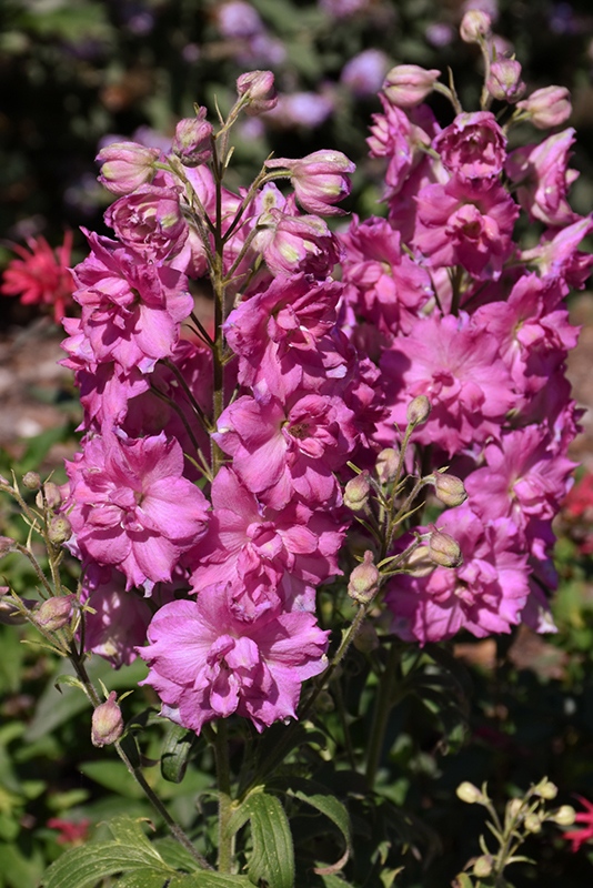 Hardiness Zone: 3a Group/Class: New Millenium Series Description: A vivid display of deep rose-pink double flowers on towering spikes with brown or white bees; good vertical form, dense flower spikes and strong stems; excellent uniformity; improved tolerance to heat and humidity Ornamental Features Pink Punch Larkspur features bold spikes of double rose flowers with shell pink overtones and brown centers rising above the foliage from early to mid summer. The flowers are excellent for cutting. Its deeply cut lobed leaves remain dark green in colour throughout the season. Landscape Attributes Pink Punch Larkspur is an herbaceous perennial with a rigidly upright and towering form. Its relatively fine texture sets it apart from other garden plants with less refined foliage. This plant will require occasional maintenance and upkeep, and should be cut back in late fall in preparation for winter. It is a good choice for attracting bees, butterflies and hummingbirds to your yard. Gardeners should be aware of the following characteristic(s) that may warrant special consideration; Pink Punch Larkspur is recommended for the following landscape applications; Planting & Growing Pink Punch Larkspur will grow to be about 3 feet tall at maturity extending to 5 feet tall with the flowers, with a spread of 24 inches. When grown in masses or used as a bedding plant, individual plants should be spaced approximately 18 inches apart. It tends to be leggy, with a typical clearance of 1 foot from the ground, and should be underplanted with lower-growing perennials. The flower stalks can be weak and so it may require staking in exposed sites or excessively rich soils. It grows at a medium rate, and under ideal conditions can be expected to live for approximately 10 years. As an herbaceous perennial, this plant will usually die back to the crown each winter, and will regrow from the base each spring. Be careful not to disturb the crown in late winter when it may not be readily seen! This plant should only be grown in full sunlight. It prefers to grow in average to moist conditions, and shouldn't be allowed to dry out. It is not particular as to soil type or pH. It is somewhat tolerant of urban pollution. This particular variety is an interspecific hybrid. It can be propagated by division; however, as a cultivated variety, be aware that it may be subject to certain restrictions or prohibitions on propagation. Pink Punch Larkspur is a fine choice for the garden, but it is also a good selection for planting in outdoor pots and containers. With its upright habit of growth, it is best suited for use as a 'thriller' in the 'spiller-thriller-filler' container combination; plant it near the center of the pot, surrounded by smaller plants and those that spill over the edges. It is even sizeable enough that it can be grown alone in a suitable container. Note that when growing plants in outdoor containers and baskets, they may require more frequent waterings than they would in the yard or garden. Be aware that in our climate, most plants cannot be expected to survive the winter if left in containers outdoors, and this plant is no exception. Contact our experts for more information on how to protect it over the winter months.