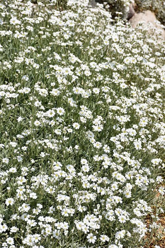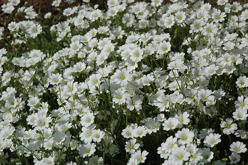 Hardiness Zone: 2b Other Names: Wooly Mouse-Ear Chickweed Description: Masses of short-lived, small white flowers bloom on beautiful low growing, silvery-gray foliage during the early summer months; drought tolerant, perfect for rock gardens, borders, groundcover or used in containers; remove blooms to control self-seeding Ornamental Features Snow-In-Summer is smothered in stunning white bell-shaped flowers at the ends of the stems in early summer. Its attractive tomentose narrow leaves remain gray in colour with hints of silver throughout the year. Landscape Attributes Snow-In-Summer is an herbaceous evergreen perennial with a ground-hugging habit of growth. It brings an extremely fine and delicate texture to the garden composition and should be used to full effect. This is a high maintenance plant that will require regular care and upkeep, and should only be pruned after flowering to avoid removing any of the current season's flowers. Deer don't particularly care for this plant and will usually leave it alone in favor of tastier treats. Gardeners should be aware of the following characteristic(s) that may warrant special consideration; Snow-In-Summer is recommended for the following landscape applications; Planting & Growing Snow-In-Summer will grow to be about 8 inches tall at maturity, with a spread of 24 inches. Its foliage tends to remain low and dense right to the ground. It grows at a fast rate, and under ideal conditions can be expected to live for approximately 10 years. As an evegreen perennial, this plant will typically keep its form and foliage year-round. This plant should only be grown in full sunlight. It prefers dry to average moisture levels with very well-drained soil, and will often die in standing water. It is considered to be drought-tolerant, and thus makes an ideal choice for a low-water garden or xeriscape application. It is not particular as to soil type or pH. It is highly tolerant of urban pollution and will even thrive in inner city environments. This species is not originally from North America. It can be propagated by division. Snow-In-Summer is a fine choice for the garden, but it is also a good selection for planting in outdoor pots and containers. Because of its spreading habit of growth, it is ideally suited for use as a 'spiller' in the 'spiller-thriller-filler' container combination; plant it near the edges where it can spill gracefully over the pot. Note that when growing plants in outdoor containers and baskets, they may require more frequent waterings than they would in the yard or garden. Be aware that in our climate, most plants cannot be expected to survive the winter if left in containers outdoors, and this plant is no exception. Contact our experts for more information on how to protect it over the winter months.