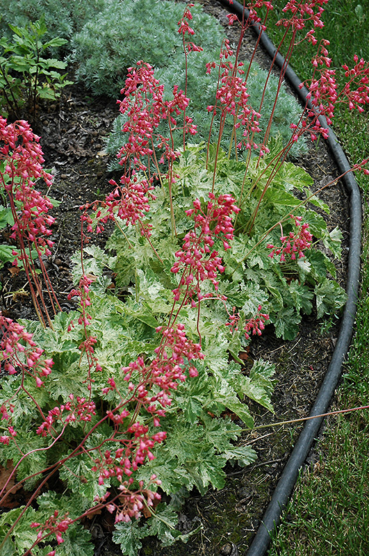Hardiness Zone: 3a Other Names: Snow Storm Coralbells, Alumroot Description: This selection has large cherry pink flowers that rise above interesting green and white variegated leaves; great for cutting; an excellent choice for border edging, rock gardens or containers; protect from hot afternoon sun in warm regions Ornamental Features Snow Angel Coral Bells features dainty spikes of ruby-red bell-shaped flowers rising above the foliage from late spring to mid summer, which emerge from distinctive dark red flower buds. Its attractive crinkled lobed leaves remain green in colour with showy white variegation throughout the year. Landscape Attributes Snow Angel Coral Bells is a dense herbaceous evergreen perennial with tall flower stalks held atop a low mound of foliage. Its relatively fine texture sets it apart from other garden plants with less refined foliage. This is a relatively low maintenance plant, and should be cut back in late fall in preparation for winter. It is a good choice for attracting hummingbirds to your yard. It has no significant negative characteristics. Snow Angel Coral Bells is recommended for the following landscape applications; Planting & Growing Snow Angel Coral Bells will grow to be about 8 inches tall at maturity extending to 18 inches tall with the flowers, with a spread of 12 inches. When grown in masses or used as a bedding plant, individual plants should be spaced approximately 10 inches apart. Its foliage tends to remain low and dense right to the ground. It grows at a medium rate, and under ideal conditions can be expected to live for approximately 10 years. As an evegreen perennial, this plant will typically keep its form and foliage year-round. This plant performs well in both full sun and full shade. However, you may want to keep it away from hot, dry locations that receive direct afternoon sun or which get reflected sunlight, such as against the south side of a white wall. It prefers to grow in average to moist conditions, and shouldn't be allowed to dry out. It is not particular as to soil type or pH. It is somewhat tolerant of urban pollution. Consider covering it with a thick layer of mulch in winter to protect it in exposed locations or colder microclimates. This is a selection of a native North American species. It can be propagated by division; however, as a cultivated variety, be aware that it may be subject to certain restrictions or prohibitions on propagation. Snow Angel Coral Bells is a fine choice for the garden, but it is also a good selection for planting in outdoor pots and containers. It is often used as a 'filler' in the 'spiller-thriller-filler' container combination, providing a mass of flowers and foliage against which the larger thriller plants stand out. Note that when growing plants in outdoor containers and baskets, they may require more frequent waterings than they would in the yard or garden. Be aware that in our climate, most plants cannot be expected to survive the winter if left in containers outdoors, and this plant is no exception. Contact our experts for more information on how to protect it over the winter months.![]()