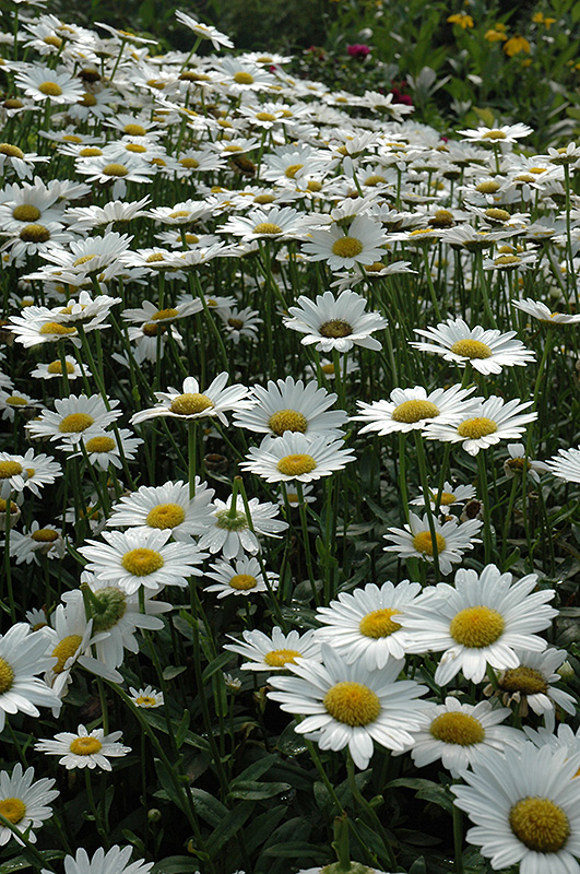 Hardiness Zone: 3b Ornamental Features Becky Shasta Daisy has masses of beautiful white daisy flowers with yellow eyes at the ends of the stems from early to late summer, which are most effective when planted in groupings. The flowers are excellent for cutting. Its serrated narrow leaves remain dark green in colour throughout the season. Landscape Attributes Becky Shasta Daisy is an herbaceous perennial with a mounded form. Its relatively fine texture sets it apart from other garden plants with less refined foliage. This plant will require occasional maintenance and upkeep, and should be cut back in late fall in preparation for winter. It is a good choice for attracting butterflies to your yard. Gardeners should be aware of the following characteristic(s) that may warrant special consideration; Becky Shasta Daisy is recommended for the following landscape applications; Planting & Growing Becky Shasta Daisy will grow to be about 24 inches tall at maturity extending to 3 feet tall with the flowers, with a spread of 24 inches. When grown in masses or used as a bedding plant, individual plants should be spaced approximately 20 inches apart. The flower stalks can be weak and so it may require staking in exposed sites or excessively rich soils. It grows at a fast rate, and under ideal conditions can be expected to live for approximately 5 years. As an herbaceous perennial, this plant will usually die back to the crown each winter, and will regrow from the base each spring. Be careful not to disturb the crown in late winter when it may not be readily seen! This plant does best in full sun to partial shade. It does best in average to evenly moist conditions, but will not tolerate standing water. It is not particular as to soil type or pH. It is highly tolerant of urban pollution and will even thrive in inner city environments. This particular variety is an interspecific hybrid. It can be propagated by division; however, as a cultivated variety, be aware that it may be subject to certain restrictions or prohibitions on propagation. Becky Shasta Daisy is a fine choice for the garden, but it is also a good selection for planting in outdoor pots and containers. Because of its height, it is often used as a 'thriller' in the 'spiller-thriller-filler' container combination; plant it near the center of the pot, surrounded by smaller plants and those that spill over the edges. It is even sizeable enough that it can be grown alone in a suitable container. Note that when growing plants in outdoor containers and baskets, they may require more frequent waterings than they would in the yard or garden. Be aware that in our climate, most plants cannot be expected to survive the winter if left in containers outdoors, and this plant is no exception. Contact our experts for more information on how to protect it over the winter months.![]()