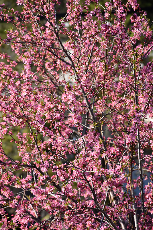 Hardiness Zone: 3a Description: This underrated multi-stemmed feature shrub is very deserving of greater use, with its cheery pink flowers in spring and blend of fall colors; very hardy, a fruitless variety, makes an excellent substitute for a flowering cherry tree, needs full sun Ornamental Features Muckle Plum is covered in stunning clusters of lightly-scented hot pink flowers along the branches in early spring, which emerge from distinctive cherry red flower buds before the leaves. It has dark green deciduous foliage. The pointy leaves turn an outstanding orange in the fall. The smooth black bark adds an interesting dimension to the landscape. Landscape Attributes Muckle Plum is a multi-stemmed deciduous shrub with an upright spreading habit of growth. Its average texture blends into the landscape, but can be balanced by one or two finer or coarser trees or shrubs for an effective composition. This is a relatively low maintenance shrub, and is best pruned in late winter once the threat of extreme cold has passed. It has no significant negative characteristics. Muckle Plum is recommended for the following landscape applications; Planting & Growing Muckle Plum will grow to be about 15 feet tall at maturity, with a spread of 10 feet. It has a low canopy with a typical clearance of 2 feet from the ground, and is suitable for planting under power lines. It grows at a medium rate, and under ideal conditions can be expected to live for approximately 30 years. This shrub should only be grown in full sunlight. It does best in average to evenly moist conditions, but will not tolerate standing water. It is not particular as to soil type or pH. It is highly tolerant of urban pollution and will even thrive in inner city environments. This particular variety is an interspecific hybrid.
