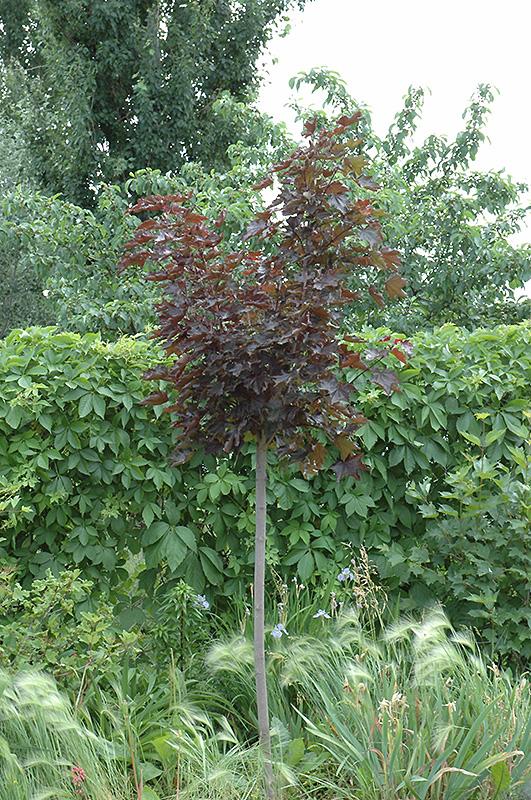 Hardiness Zone: 3b Description: This well shaped shade tree is graced with burgundy to rich purple leaves throughout the whole season; hardy enough for northern gardeners; will adapt to most soils; casts a deep shade when mature Ornamental Features Prairie Splendor Norway Maple has attractive deep purple deciduous foliage which emerges burgundy in spring on a tree with an oval habit of growth. The lobed leaves are highly ornamental and turn an outstanding burgundy in the fall. It is covered in stunning corymbs of lemon yellow flowers along the branches in early spring before the leaves. Landscape Attributes Prairie Splendor Norway Maple is a dense deciduous tree with a shapely oval form. Its relatively coarse texture can be used to stand it apart from other landscape plants with finer foliage. This is a relatively low maintenance tree, and should only be pruned in summer after the leaves have fully developed, as it may 'bleed' sap if pruned in late winter or early spring. It has no significant negative characteristics. Prairie Splendor Norway Maple is recommended for the following landscape applications; Planting & Growing Prairie Splendor Norway Maple will grow to be about 40 feet tall at maturity, with a spread of 30 feet. It has a high canopy with a typical clearance of 6 feet from the ground, and should not be planted underneath power lines. As it matures, the lower branches of this tree can be strategically removed to create a high enough canopy to support unobstructed human traffic underneath. It grows at a medium rate, and under ideal conditions can be expected to live for 80 years or more. This tree should only be grown in full sunlight. It prefers to grow in average to moist conditions, and shouldn't be allowed to dry out. It is not particular as to soil type or pH. It is highly tolerant of urban pollution and will even thrive in inner city environments. This is a selected variety of a species not originally from North America.![]()