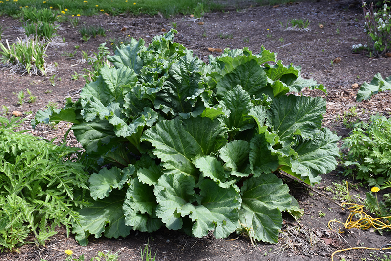 Hardiness Zone: 2b Other Names: Canadian Red Rhubarb Description: Long thick dark red leaf stems have a sweet and juicy flavor with very tender skin and flesh texture without a stringyness like most other rhubarb; harvest throughout summer; only stems are edible, other plant parts are poisonous Edible Qualities Canada Red Rhubarb is a perennial that is commonly grown for its edible qualities, although it does have ornamental merits as well. The large cherry red stalks are typically harvested when mature. The stalks have a sweet taste and a crisp texture. The stalks are most often used in the following ways: Features & Attributes Canada Red Rhubarb features bold spikes of white flowers rising above the foliage from early to mid summer. Its enormous crinkled round leaves remain green in colour throughout the season. The cherry red stems are very colorful and add to the overall interest of the plant. This is an herbaceous perennial with a rigidly upright and towering form. Its wonderfully bold, coarse texture can be very effective in a balanced garden composition. This plant will require occasional maintenance and upkeep, and can be pruned at anytime. Deer don't particularly care for this plant and will usually leave it alone in favor of tastier treats. It has no significant negative characteristics. Aside from its primary use as an edible, Canada Red Rhubarb is sutiable for the following landscape applications; Planting & Growing Canada Red Rhubarb will grow to be about 24 inches tall at maturity extending to 4 feet tall with the flowers, with a spread of 3 feet. It grows at a fast rate, and under ideal conditions can be expected to live for approximately 10 years. As an herbaceous perennial, this plant will usually die back to the crown each winter, and will regrow from the base each spring. Be careful not to disturb the crown in late winter when it may not be readily seen! This plant is quite ornamental as well as edible, and is as much at home in a landscape or flower garden as it is in a designated edibles garden. It does best in full sun to partial shade. It is quite adaptable, prefering to grow in average to wet conditions, and will even tolerate some standing water. It is not particular as to soil type or pH. It is highly tolerant of urban pollution and will even thrive in inner city environments. This particular variety is an interspecific hybrid. It can be propagated by division; however, as a cultivated variety, be aware that it may be subject to certain restrictions or prohibitions on propagation.