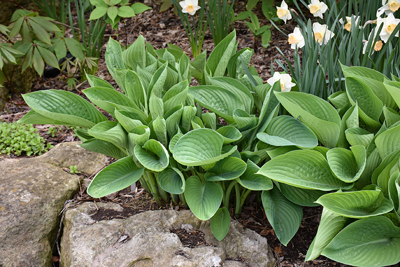Hardiness Zone: 2a Other Names: Plantain Lily, Funkia Description: A quick growing variety featuring dense mounds of large, blue-green textured. heart-shaped leaves; pale lavender flowers appear in mid-summer; adds texture, color and contrast to shaded beds, borders and containers; excellent slug resistance; easy to grow Ornamental Features Blue Umbrellas Hosta features dainty spikes of lavender tubular flowers rising above the foliage in early summer. Its attractive textured heart-shaped leaves remain blue in colour throughout the season. Landscape Attributes Blue Umbrellas Hosta is a dense herbaceous perennial with tall flower stalks held atop a low mound of foliage. Its medium texture blends into the garden, but can always be balanced by a couple of finer or coarser plants for an effective composition. This is a relatively low maintenance plant, and is best cleaned up in early spring before it resumes active growth for the season. Gardeners should be aware of the following characteristic(s) that may warrant special consideration; Blue Umbrellas Hosta is recommended for the following landscape applications; Planting & Growing Blue Umbrellas Hosta will grow to be about 18 inches tall at maturity extending to 3 feet tall with the flowers, with a spread of 4 feet. When grown in masses or used as a bedding plant, individual plants should be spaced approximately 4 feet apart. Its foliage tends to remain dense right to the ground, not requiring facer plants in front. It grows at a medium rate, and under ideal conditions can be expected to live for approximately 10 years. As an herbaceous perennial, this plant will usually die back to the crown each winter, and will regrow from the base each spring. Be careful not to disturb the crown in late winter when it may not be readily seen! This plant does best in partial shade to shade. It prefers to grow in average to moist conditions, and shouldn't be allowed to dry out. It is not particular as to soil type or pH. It is somewhat tolerant of urban pollution. This particular variety is an interspecific hybrid. It can be propagated by division; however, as a cultivated variety, be aware that it may be subject to certain restrictions or prohibitions on propagation.