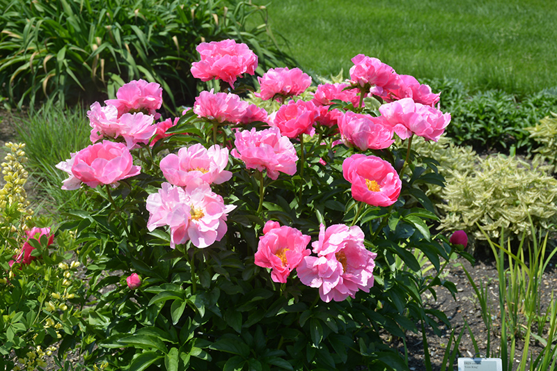 Hardiness Zone: 2a Description: This elegant peony is an early summer bloomer; the buds open to reveal vivid pink blooms that have a waxy lustre; stunning when massed in the garden or borders; the fragrant flowers open on stiff stems making them an excellent cut flower Ornamental Features Paula Fay Peony features bold lightly-scented semi-double pink flowers with yellow centers at the ends of the stems in early summer. The flowers are excellent for cutting. Its compound leaves remain green in colour throughout the season. Landscape Attributes Paula Fay Peony is an herbaceous perennial with a more or less rounded form. Its medium texture blends into the garden, but can always be balanced by a couple of finer or coarser plants for an effective composition. This is a relatively low maintenance plant, and should be cut back in late fall in preparation for winter. Deer don't particularly care for this plant and will usually leave it alone in favor of tastier treats. Gardeners should be aware of the following characteristic(s) that may warrant special consideration; Paula Fay Peony is recommended for the following landscape applications; Planting & Growing Paula Fay Peony will grow to be about 32 inches tall at maturity, with a spread of 3 feet. When grown in masses or used as a bedding plant, individual plants should be spaced approximately 30 inches apart. The flower stalks can be weak and so it may require staking in exposed sites or excessively rich soils. It grows at a slow rate, and under ideal conditions can be expected to live for approximately 20 years. As an herbaceous perennial, this plant will usually die back to the crown each winter, and will regrow from the base each spring. Be careful not to disturb the crown in late winter when it may not be readily seen! This plant should only be grown in full sunlight. It prefers to grow in average to moist conditions, and shouldn't be allowed to dry out. It is not particular as to soil pH, but grows best in rich soils. It is somewhat tolerant of urban pollution. This particular variety is an interspecific hybrid. It can be propagated by division; however, as a cultivated variety, be aware that it may be subject to certain restrictions or prohibitions on propagation.![]()